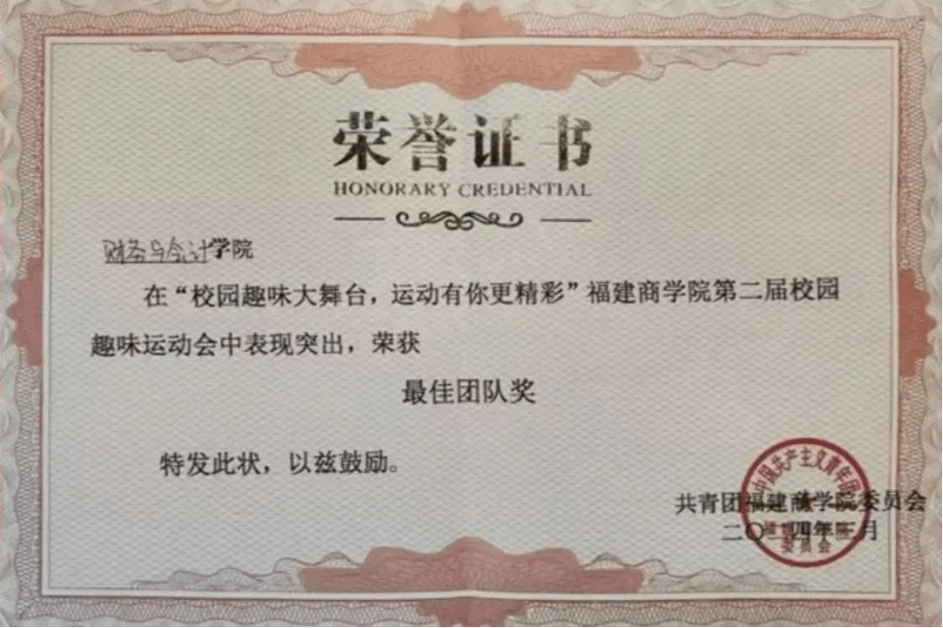 近日,太阳成集团tyc122ccvip代表队在“校园趣味大舞台,运动有你更精彩”太阳成集团122cc第二届春季趣味运动会中斩获团体第一名,并获最佳团队奖!