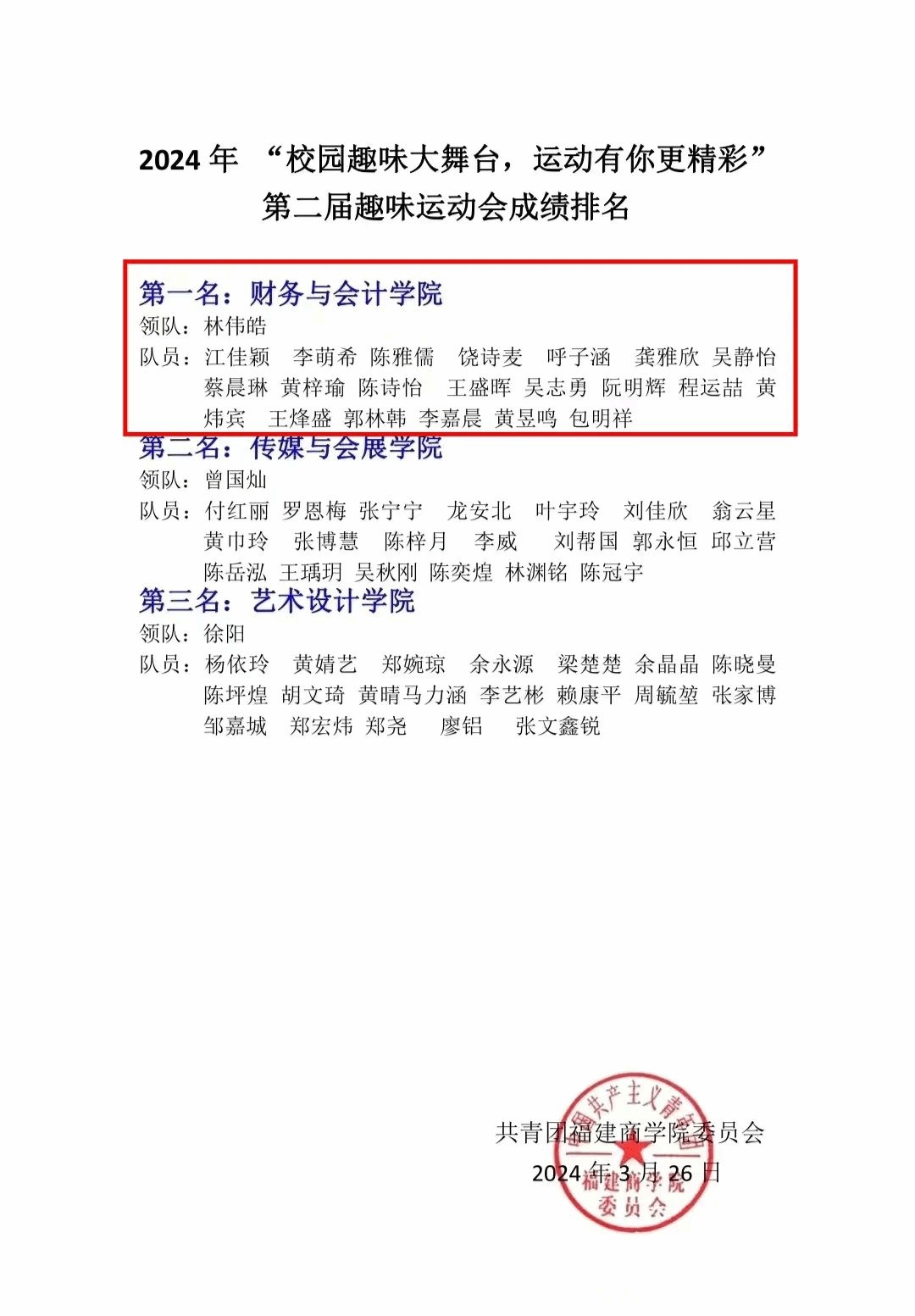 体育强则中国强,国运兴则体育兴!生命在于运动,希望每一位财会学子都能坚持锻炼,在体育锻炼中增强体质、享受乐趣、强化集体主义观念和拼搏意志,以强健的体魄去坦然面对未来的每一个挑战,为中华民族伟大复兴提供凝心聚气的强大精神力量。