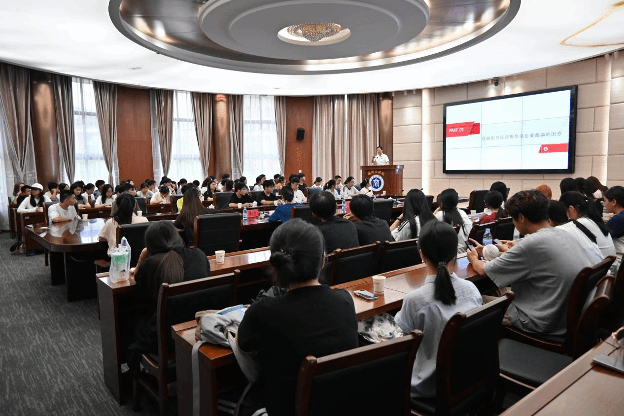 就“就业需要注意哪些问题”“数字化时代财务人员有哪些需要改变的”等问题与学生深入交流,并分享个人创业经历,强调“担当精神”是职场成长的关键。现场气氛热烈,掌声不断。